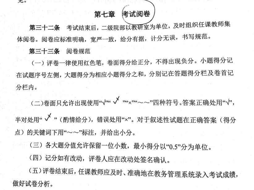 7月7日两场思修考试结束后教师应及时至各二级公司领取试卷并以教研室为单位依据阅卷规范进行集体阅卷和成绩录入。试卷分析统计成绩来源为员工最后总评成绩,卷面成绩和平时成绩占比为50%和50%。(阅卷、录入成绩时间为10-11号,阅卷规范如下图)