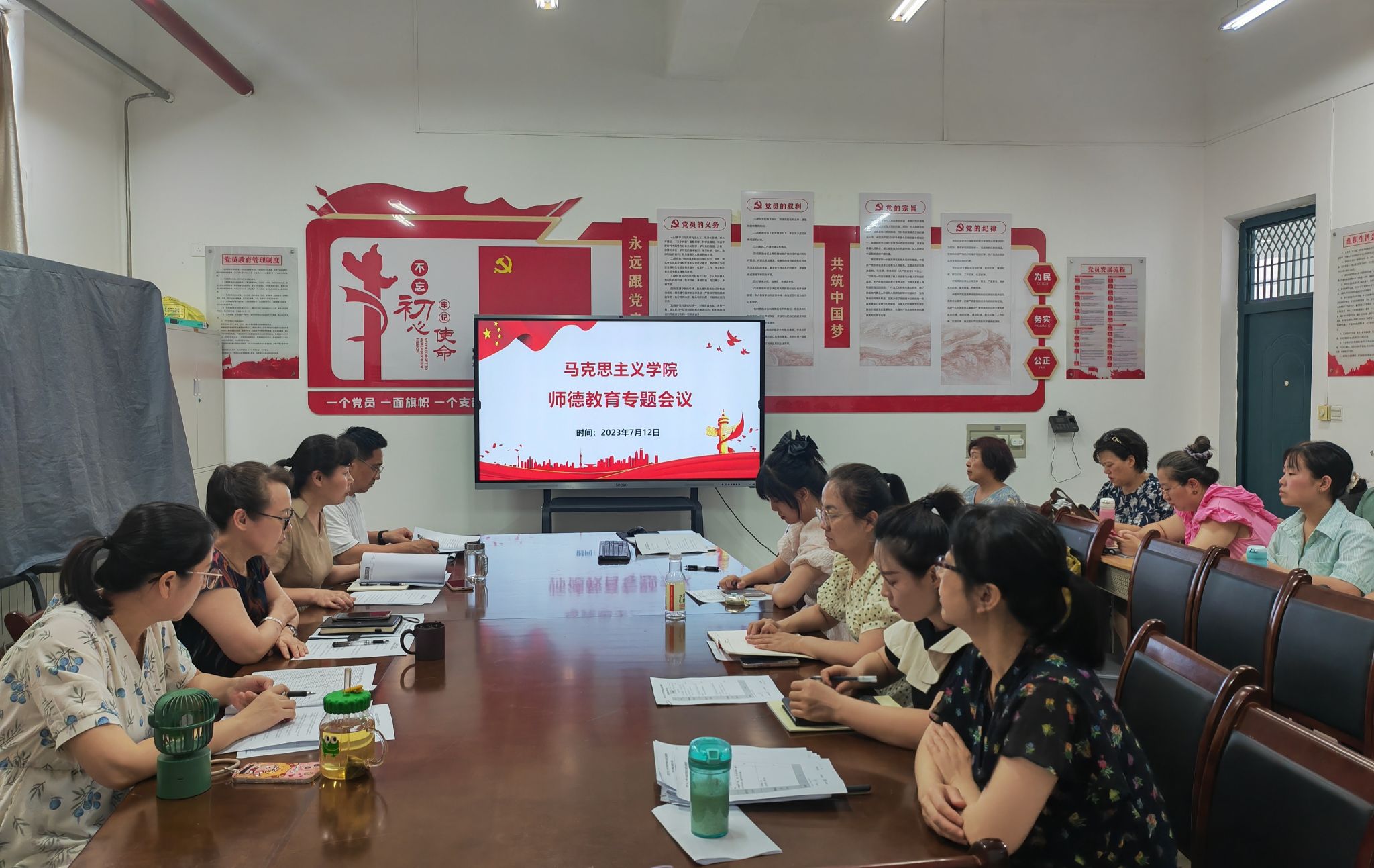 2023年7月12日,金年会金字招牌诚信至上召开师德教育专题会议。传达《金年会官方网站入口师德集中学习教育工作实施方案》,部署《金年会金字招牌诚信至上师德集中学习教育工作实施方案》。集中学习习近平关于教育的重要论述、习近平318同北老员工代表座谈讲话、《教育部关于高校教师师德失范行为处理的指导意见》《新时代教师职业行为十项准则》《陕西省高校教师师德失范行为处理办法(试行)》《陕西省师德师风建设三年行动计划(2021—2023)》《金年会官方网站入口关于进一步加强师德师风建设的若干措施》。党总支副书记、经理王江峰讲党课。组织观看教育部师德师风专项通报警示片和优秀教师电影《黄大年》。落实专项整治“清朗净化”行动。组织师德师风法律法规考试。全体教师参加,党总支书记王小亚主持会议。