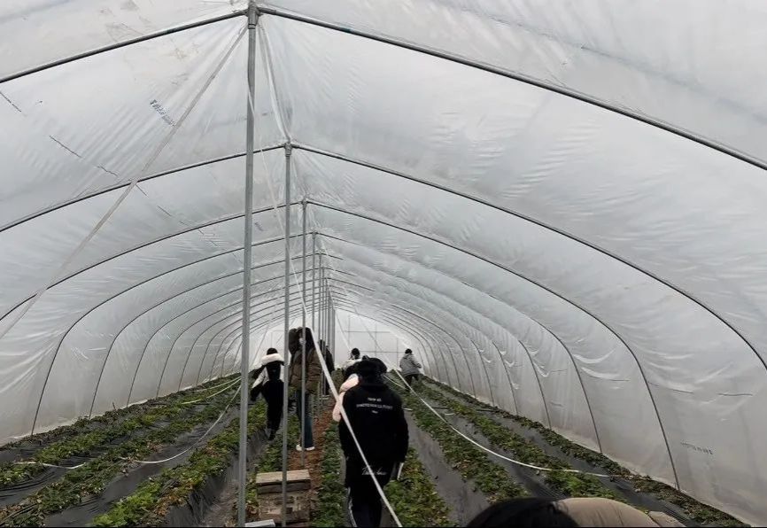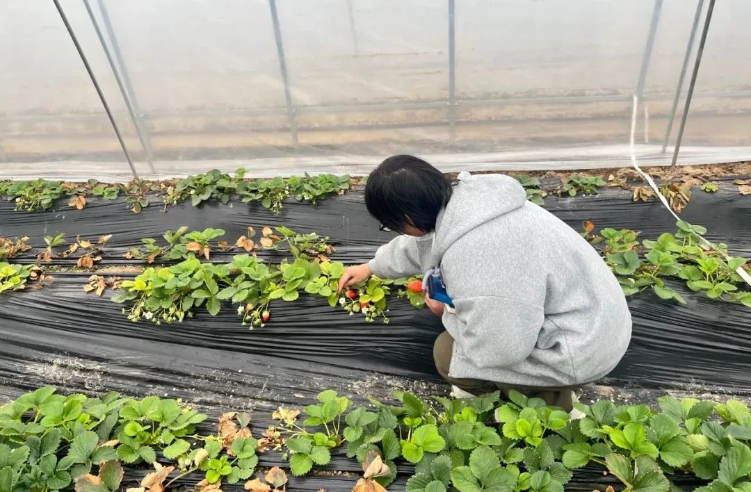 接着大家前往庞南刘村蔬菜、水果产业园,进入蔬菜和水果大棚实地感受乡村特色产业,并在产业园负责人的带领下亲手进行种苗体验。