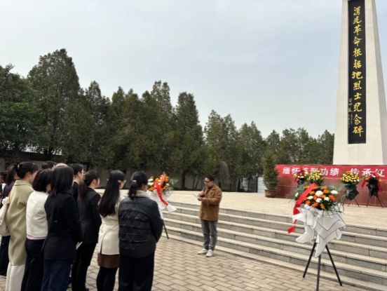 金年会金字招牌诚信至上教工支部书记梁鹏介绍了本次活动的主题和渭北革命根据地的相关背景,全体师生瞻仰烈士纪念碑、敬献花篮,鞠躬默哀,深切缅怀革命烈士的历史功勋。