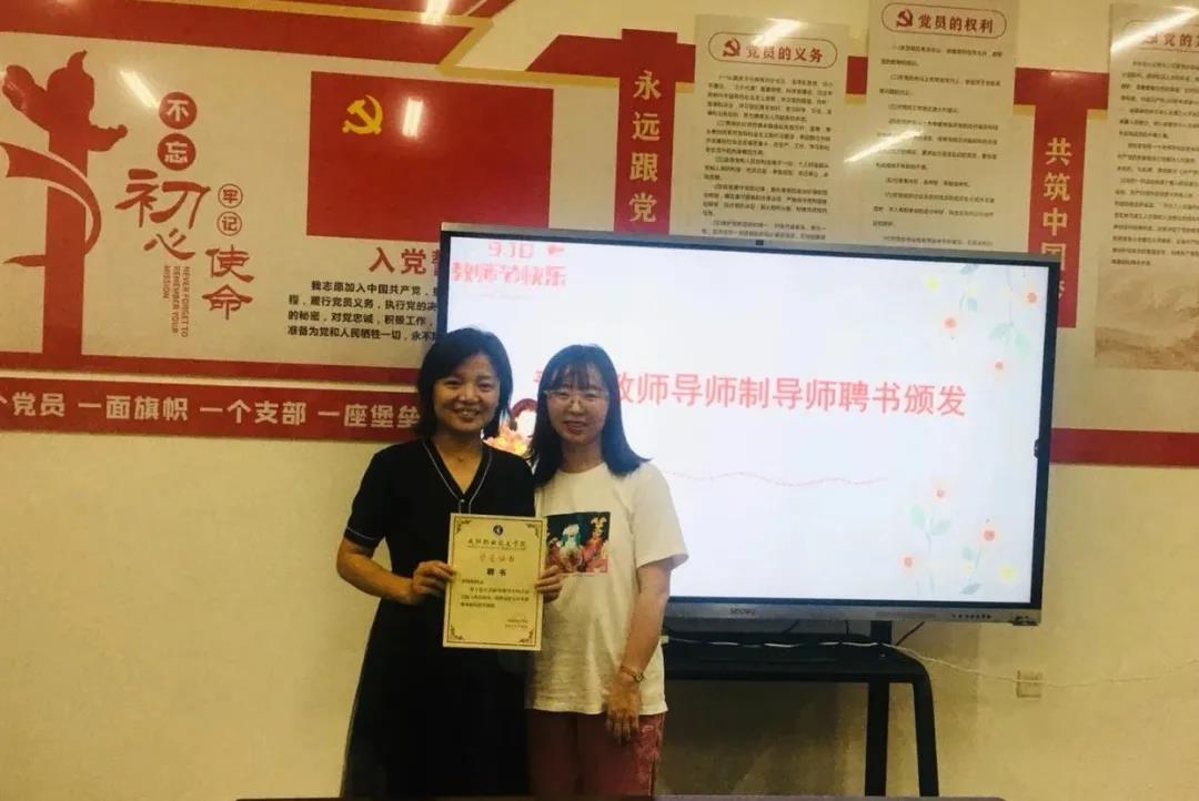 为金年会金字招牌诚信至上第十期青年教师导师制的导师颁发聘书,被指导青年教师与导师现场合影留念。