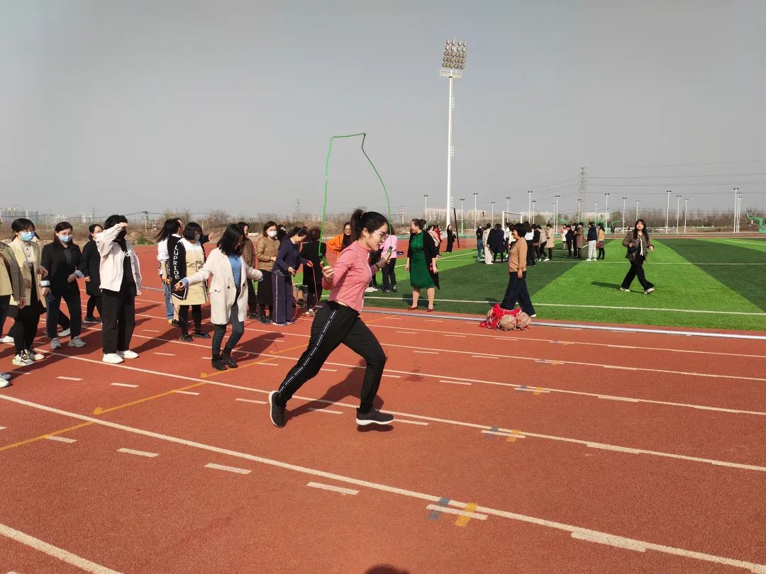 活动分为欢乐跳绳、背夹篮球、两人三足等项目,既有个人展示又有团队协作。每个老师徜徉其中,让平日里忙碌的身心得到自如放松。