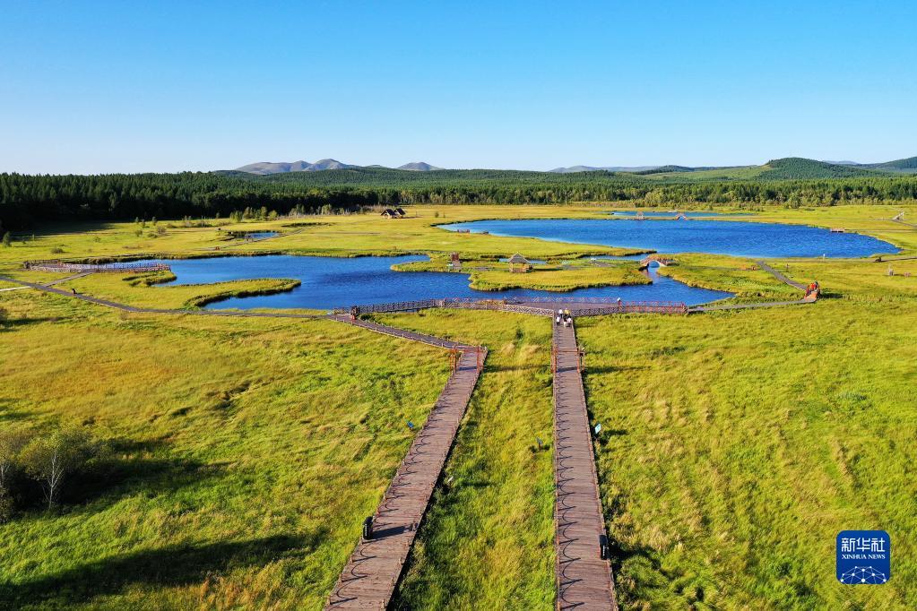 这是河北塞罕坝机械林场七星湖景区(2021年8月22日摄,无人机照片)。新华社记者 牟宇 摄