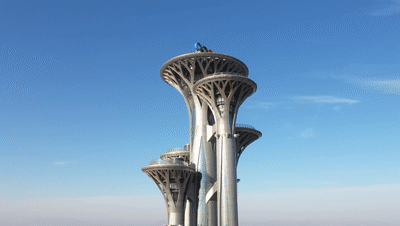 首钢滑雪大跳台的造型设计融入了敦煌壁画中的“飞天”元素,建筑曲线优美、流畅。(总台央视记者刘岳拍摄)