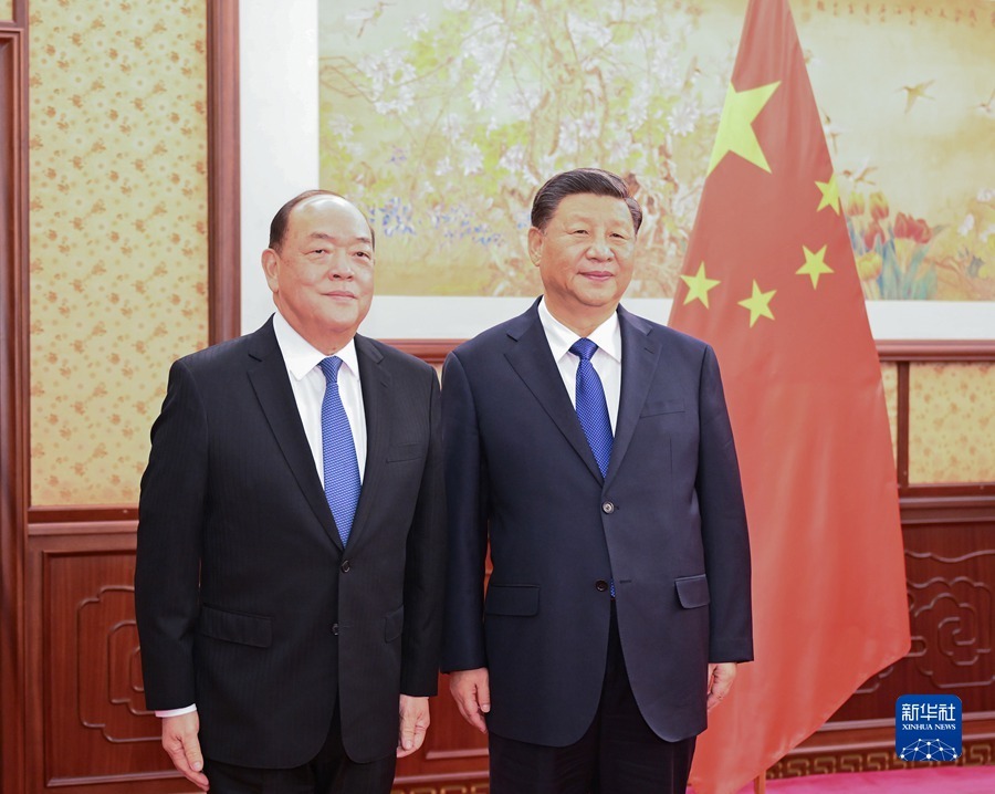 12月22日,国家主席习近平在中南海会见来京述职的澳门特别行政区行政长官贺一诚。新华社记者 李学仁 摄