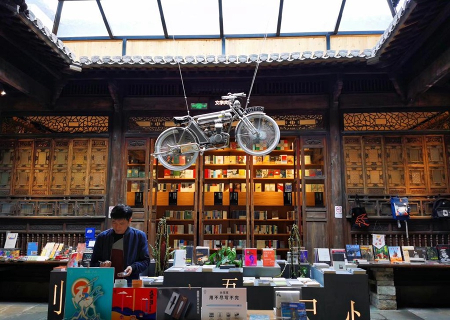 “活化”后的老宅变身成融古典与现代于一身的文艺书店,占地1200平方米,藏书总量超13000册,还与黄山市图书馆打通一体化服务,实行通借通还,引进数字化阅读设备,拓宽了当地城市阅读空间的服务业态。