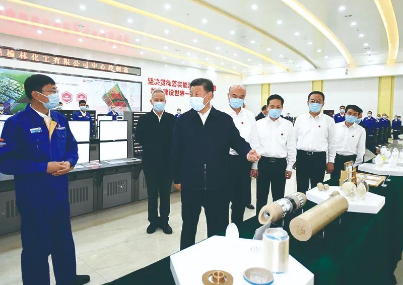 2021年9月13日上午,习近平在国家能源集团榆林化工有限公司中心控制室考察。新华社记者 李学仁摄