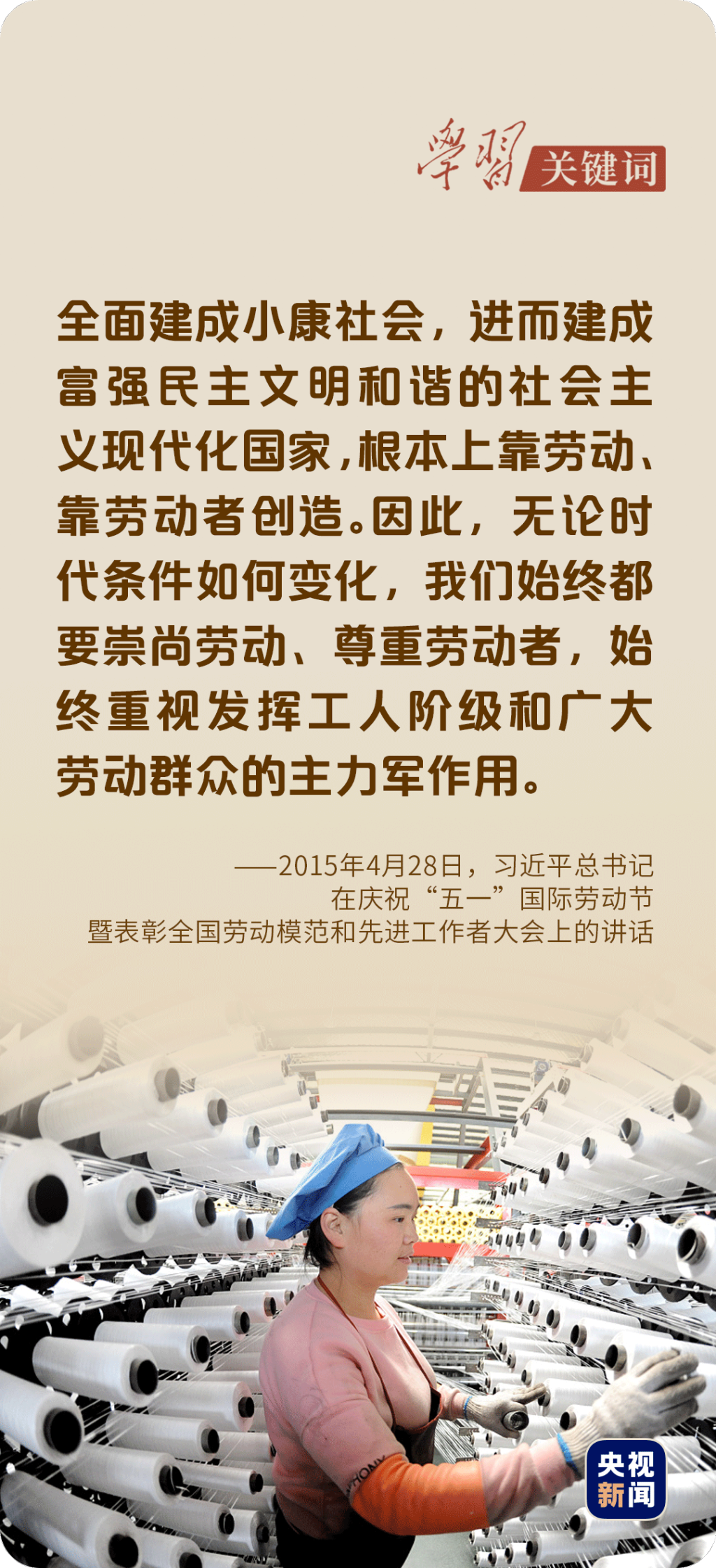 4月27日,“五一”国际劳动节到来之际,习近平总书记代表党中央,向广大技能人才和劳动模范致以诚挚的问候,向广大劳动群众致以节日的祝贺。
