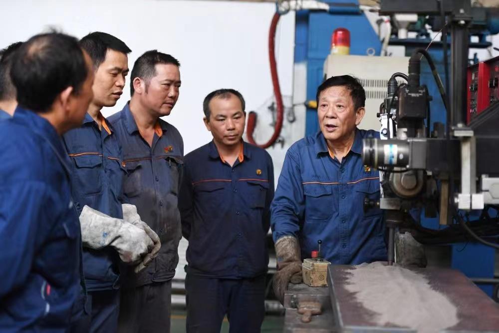 艾爱国(右一)多次参与我国重大项目焊接技术攻关,攻克数百个焊接技术难关。