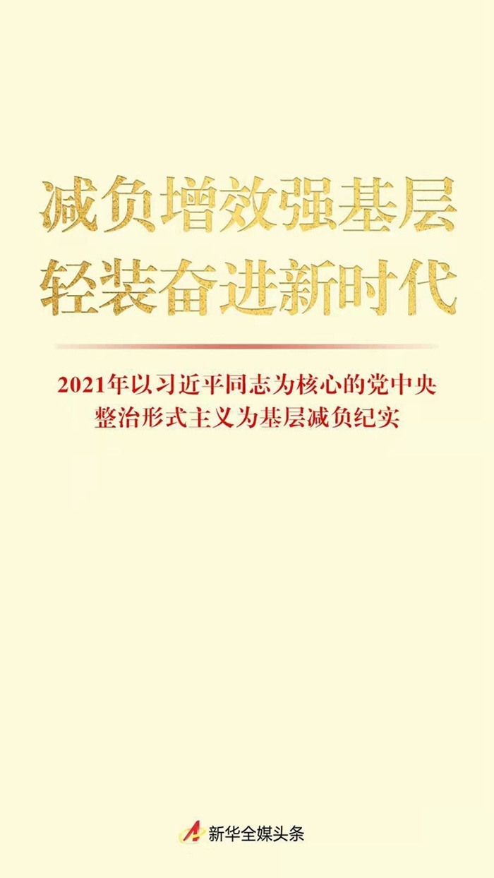 2022年是党的二十大召开之年、“十四五”时期的关键之年。在以习近平同志为核心的党中央坚强领导下,持续解决形式主义突出问题,深化拓展为基层减负工作,必将使干部作风更加务实、党群关系更加紧密、干群关系更加融洽、党心民心更加凝聚,以优良作风夺取新时代新的伟大胜利。(新华社记者王琦 孙少龙 高蕾;参与采写张研 杨湛菲)