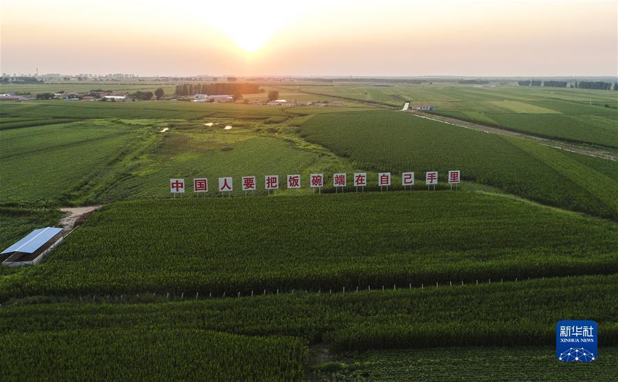 这是2020年7月23日拍摄的吉林省梨树县国家百万亩绿色食品原料(玉米)标准化生产基地核心示范区(无人机照片)。新华社记者 许畅 摄
