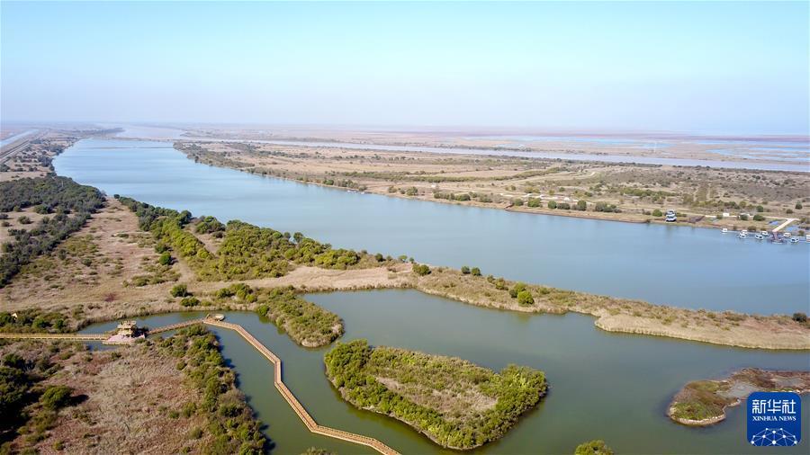 山东黄河三角洲国家级自然保护区风貌(2021年10月27日摄,无人机照片)。 新华社记者 郭绪雷 摄