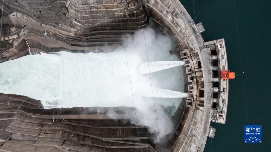 白鹤滩水电站一景(5月19日摄,无人机照片)。 新华社记者 胡超 摄