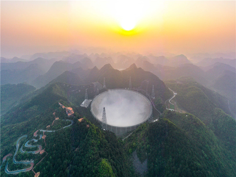 3月31日清晨拍摄的“中国天眼”全景(维护保养期间拍摄,无人机照片)。新华社记者 欧东衢 摄