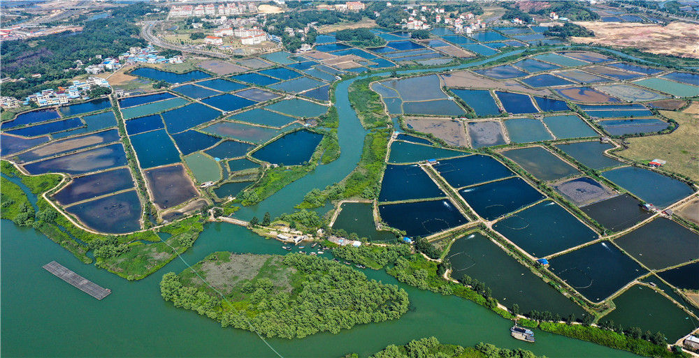 这是广西钦州市钦南区沙埠镇船埠环村的冬日虾塘景色(11月25日摄,无人机照片)。新华社记者 张爱林 摄