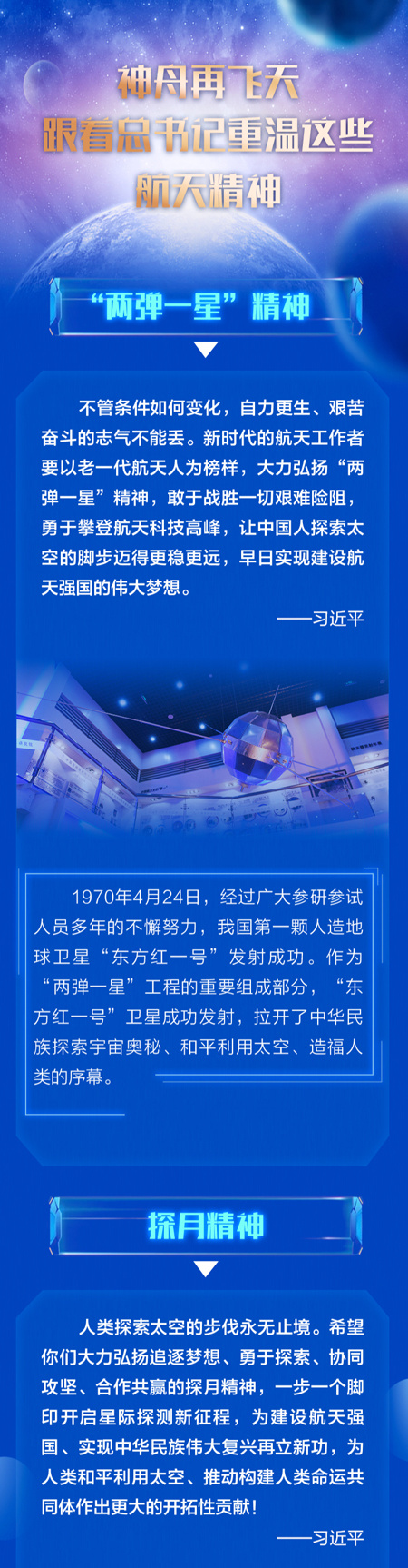 “两弹一星”精神、探月精神、新时代北斗精神、载人航天精神、航天测控精神……在不同场合,习近平总书记频频提及这些精神,为中国航天人点赞。