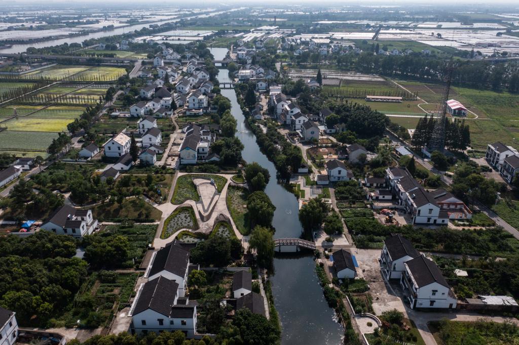 近年来,浙江省嘉兴市嘉善县因地制宜地走出了一条城乡深度融合推动共同富裕的实践路子。图为2021年7月12日,空中俯瞰嘉善县姚庄镇横港村(无人机照片)。新华社记者 徐昱 摄