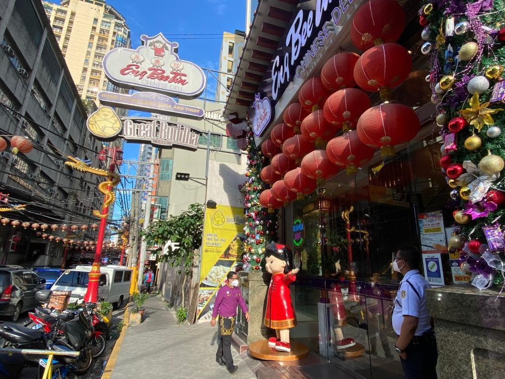 2021年11月3日,在菲律宾首都马尼拉中国城,一名男子走进“永美珍”旗舰店。