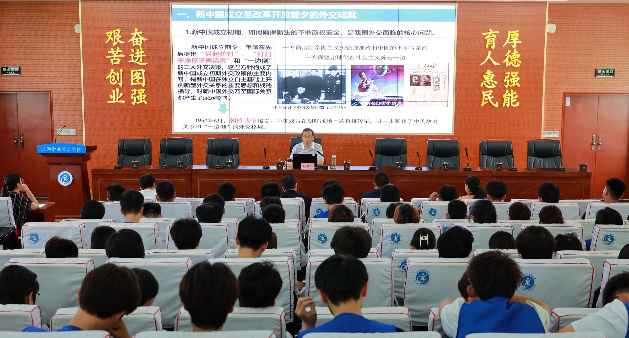 杨卫军引经据典,围绕新中国成立至改革开放前夕的外交成就、改革开放与我国外交事业的发展和党的十八大以来我国外交成就等3个方面展开,为在场师生梳理了中国特色大国外交的历史脉络。讲授内容涉及知识面广、感染力强、气氛活跃。